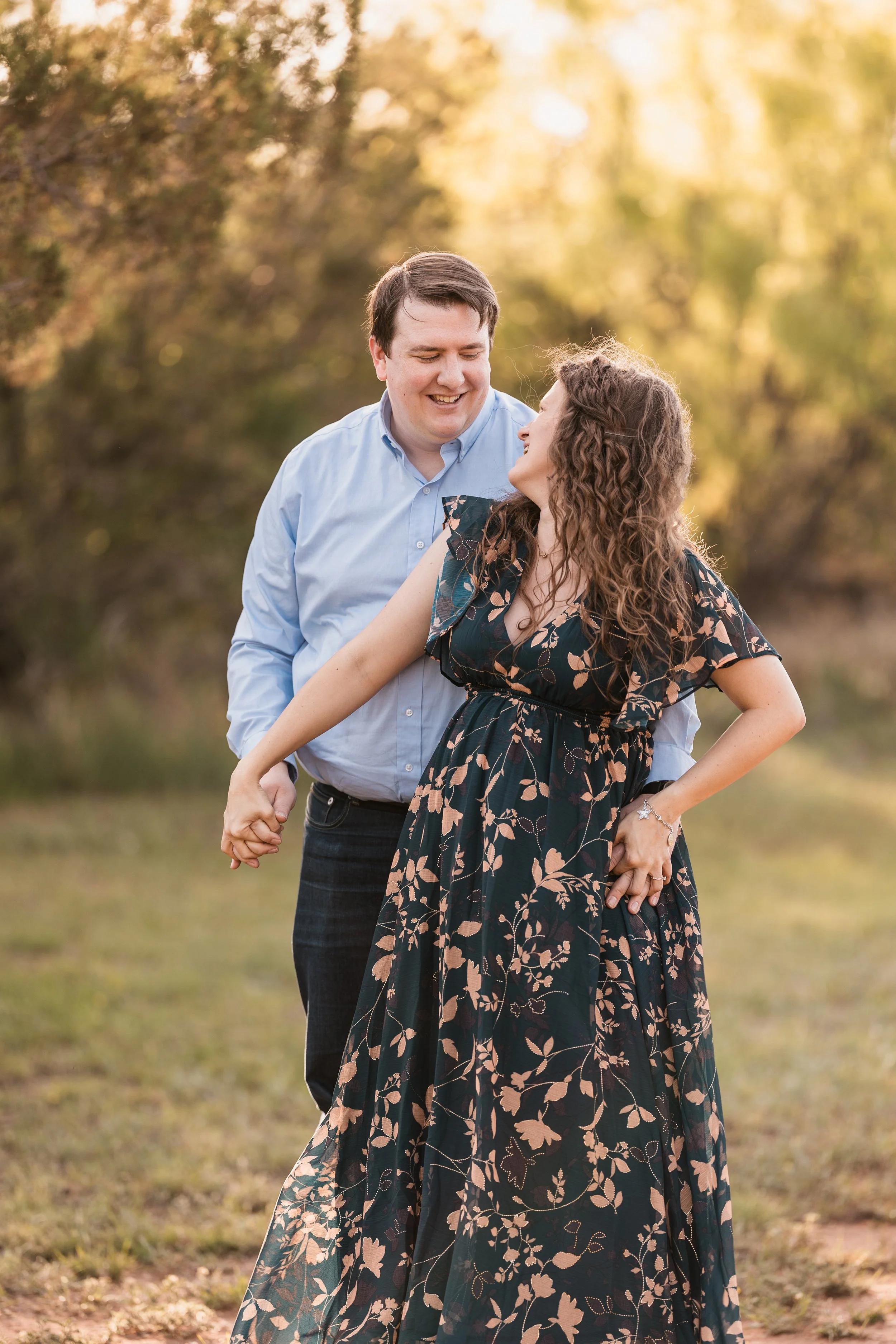 Outdoor Maternity sessions are unique, softer, and have much more movement. I typically photograph outdoors during the “Golden Hour,” about an hour before sunset. The sun makes you glow, and when photographing, it softens the skin and gives the overall image a softer look. The sun is constantly moving, so we’ll need to move more to get that perfect light. When I photograph at Palo Duro Canyon, I choose spots that are close to a restroom so you can easily empty your bladder. Outdoor Maternity sessions aren’t as polished because our panhandle wind is a factor. I love it when the wind is blowing, and it blows your hair in your face. It adds an extra layer of emotion to the photo. Also, consider the time of year. There are about three to four months when it’s too cold to photograph comfortably outside. It starts to warm up around the end of April and cools down around the second week of November.